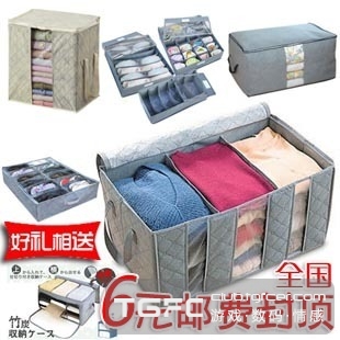 » <6元包邮>竹炭收纳箱 衣物整理箱 储物箱65L 可视收纳盒 有盖硬底