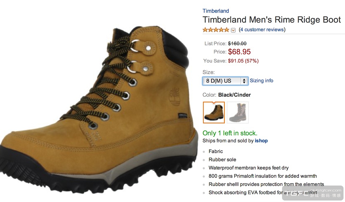天木兰 Timberland rime ridge 徒步防水靴 8D&8.5D