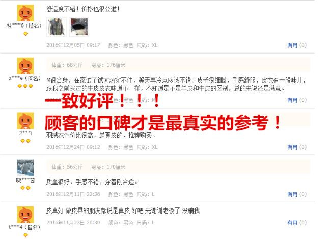 MONCLER蒙口真皮羽绒服图片有些韵味照不出来!最重要的肯定是皮咯!澳洲进口的绵羊皮,比国产的好太多了,柔软度和细腻,一摸上手那感觉真的好,没必要吹,收到就知道是好货了!绵羊皮就是清清的一股淡香皮味,没有山羊皮的那种膻味,高端皮质!!里料同样重要,滑溜的,进口布料,不起球!!充填的羽绒是顶级的白鹅绒,蓬松度没有注明,不过蓬松度是比较好的,目测应该过700!羽绒都是双层独立填充的,不掉绒,技术难得,本人最讨厌掉毛的羽绒服!不过瑕疵基本没有,缺个吊牌,另外本人目测洗标是少了一张的,不碍事,货正才是硬道理!那个里面几只鹅的连环画都是品牌标志的意思了,每一件都不缺,这个要赞!拉链是蒙口品牌定制的全刚拉链,拉链头的品牌logo红蓝激光钢染无可仿制!牛逼!喜欢的可以入手了!一定不后悔!我173 130斤穿L,加厚一点的毛衣,小棉衣基本XL可以,保暖性极佳,南方基本一件打底加这件轻松过冬!