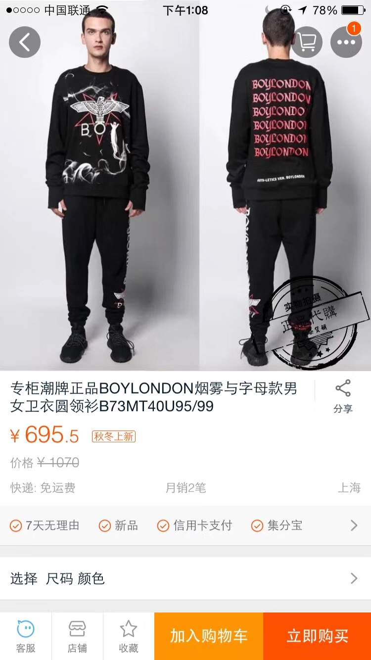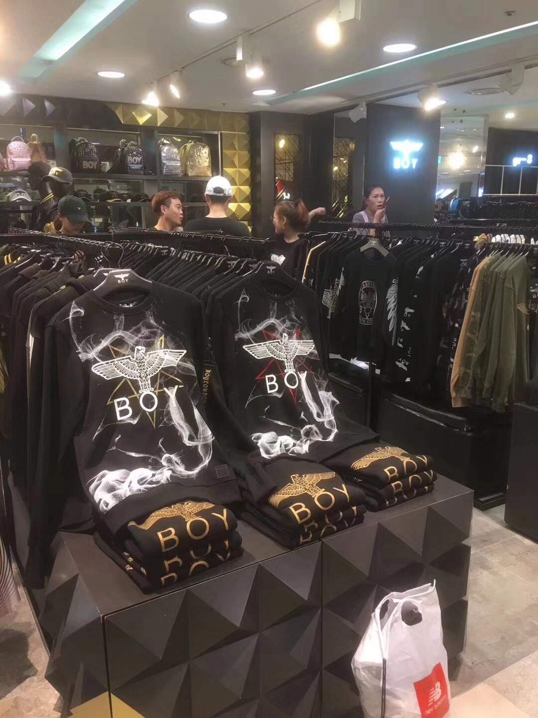 品名:boy烟雾卫衣 158包邮 编号736105100。颜色:金色 和红色。2017boy专柜新款,10月1日官网出官方图,各大专卖店门店模特上身作为主推款,boy烟雾系列毛圈卫衣,山东胶州工厂出品,原箱原版包装来货。独家款,男女同款,袖口是亮点,螺纹很长,穿起来是炸裂的感觉,让你是不一样的烟火。肩袖上的拉条飘带都是胶州订单原厂配件,后期可能就没有原厂配件了。男女同款,s到2xl,最大穿到190斤左右。必须暴躁,必须主推。 独家独家,光是烟雾系列的印花可以难倒很多做仿版的老板。 独一无二。