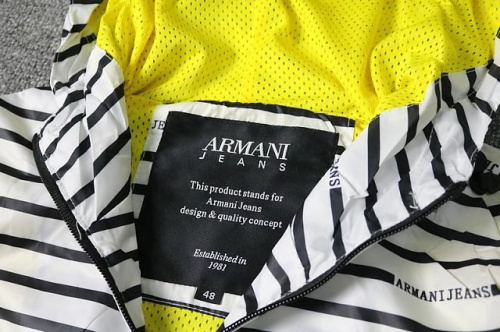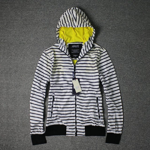 » ARMANI JEANS/阿玛尼男士条纹连帽休闲薄款时尚百搭风衣外套 128出