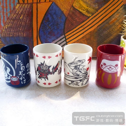 MH3RD日式手杯四款--白色12,其他10元...还有,现在没时间玩游戏,哪位能告诉下这四款具体上面是什么东西?搞的自己都不明白很不爽...