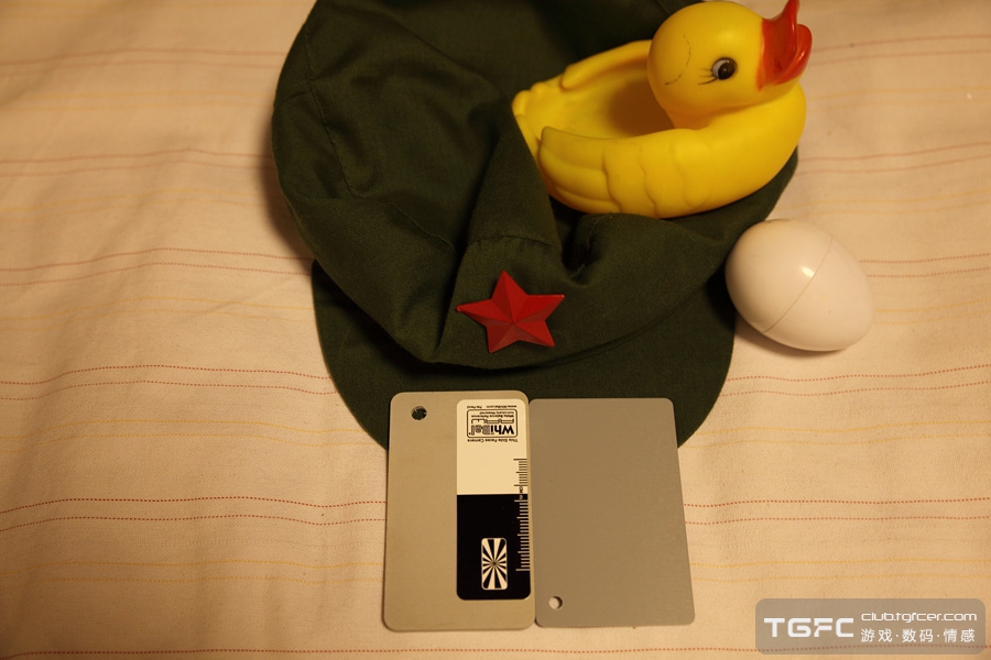 之所以选黄小鸭和军帽为对象,是因为这些比较常见,大家能够有更直观的对比。两张对比可以看出,和国外那篇blog的测试结果类似,WhiBal的比DGK的要偏青偏蓝一点。DGK校准下床单的色温非常准,这个床单在日光下基本上就是这个颜色。