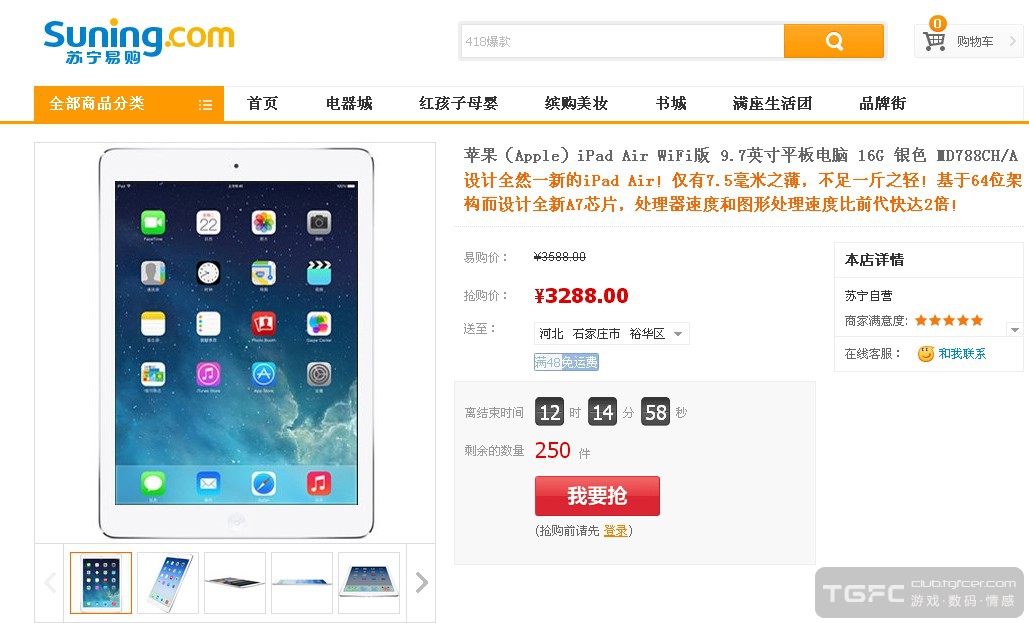 出一台全新ipad air 16G WiFi版3350