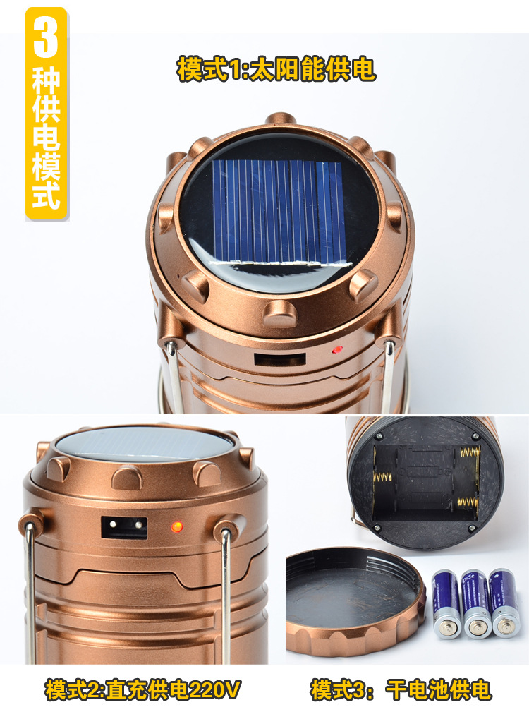 配置:太阳能充电、 外接充电器、 五号电池蓄电、电力充满灯光能用6小时以上待电时间长。