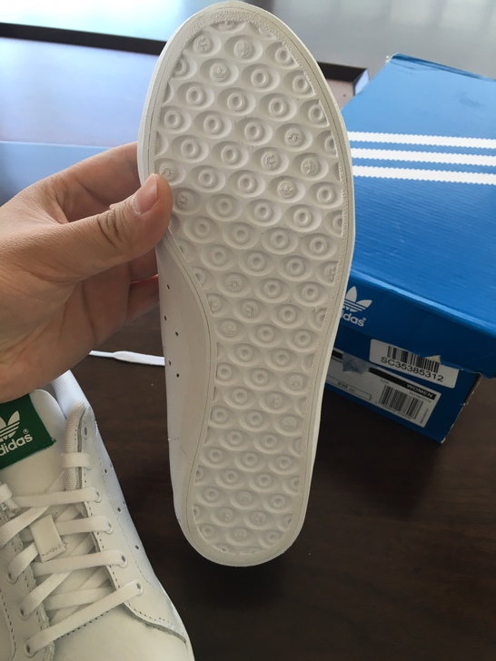 阿迪达斯小白鞋2016新款三叶草板鞋女鞋史密斯绿尾 尺码 37 右脚微瑕疵。