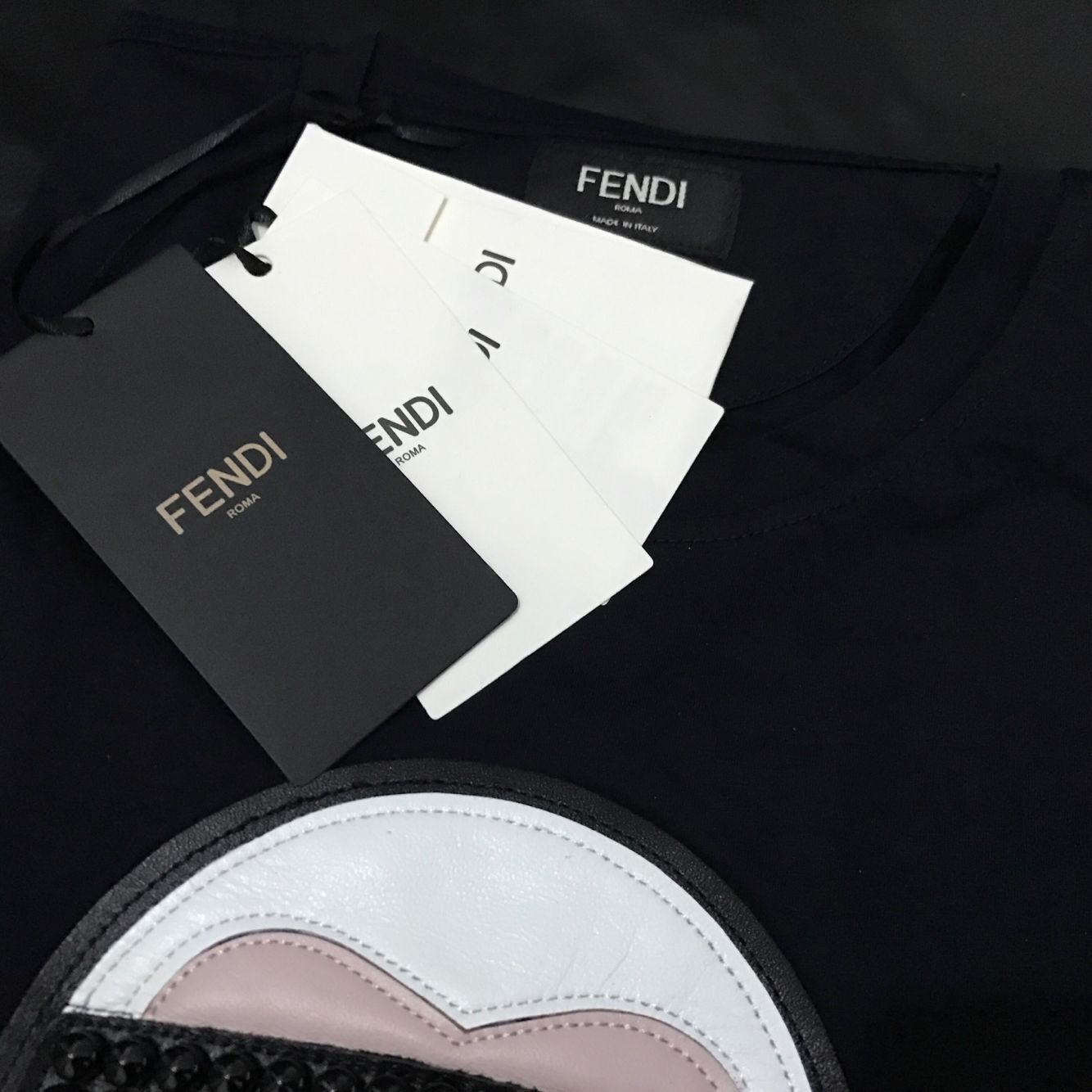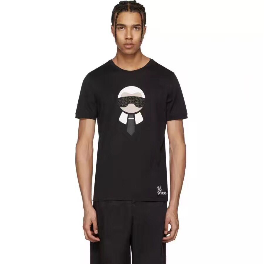 63颗纯手工镶嵌技术(非粘贴钉)Fendi 芬迪尾单拼接羊皮老佛爷t恤