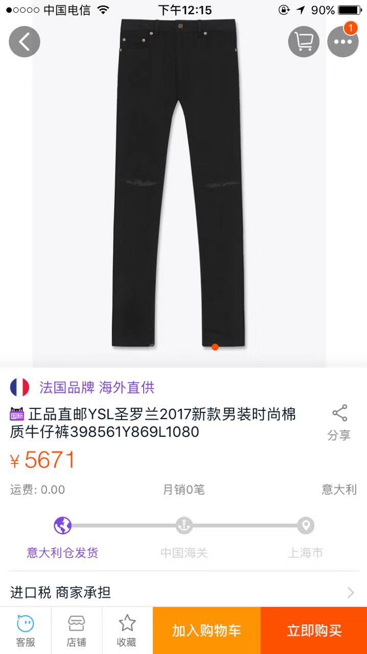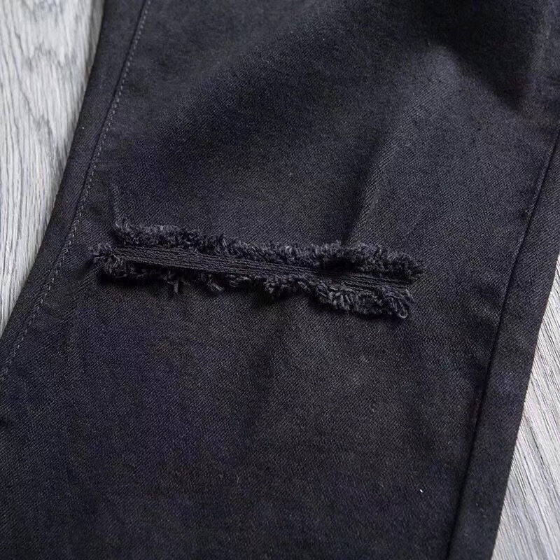 圣罗兰破洞牛仔!!220 经典的膝盖刀割款,中内外明星必抢的当季单品 ,也是一线明星热爱的品牌,没有谁能抵挡他的诱惑,比如 权志龙 吴亦凡 侃爷 小贝 等 这几个都是他的真爱粉,也是圣罗兰独创的黑色超弹斜纹细棉布低腰紧身小脚牛仔裤,采用膝盖刀割破洞设计以及拉链式前挡,面料是日本制造国内无法仿制98%棉2%聚氨酯纤维,也就是经纱纯棉纱+PTT 弹力记忆丝,这种面料被称为日本黑武士面料,这是顶级弹力牛仔裤的标志,像这样高弹力的牛仔裤,只要穿上几次就能记住每个人的腿型,让你绝对不会有束缚感 大腿太粗的穿不了修身版型