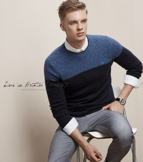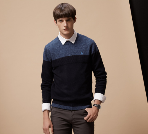 » 哈吉斯秋冬季男士商务休闲拼色时尚修身羊毛针织衫 88/件惊爆价