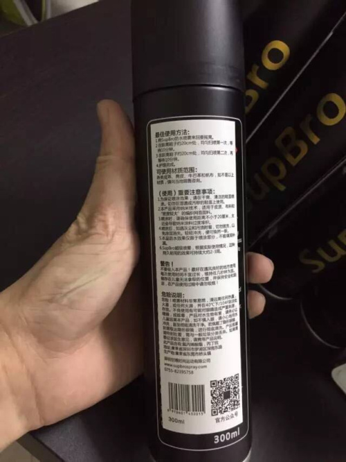 supbro美帝黑科技纳米防水防污喷雾剂 再次到货 半年等一回 好不好用看之前的评价 全球都在用的好货 口碑在外的神奇小黑瓶 300ml/瓶 保质期一年 使用量为13-15对鞋左右 防护时间13-15天左右 它的出现拯救了鞋子的GDP值 冬天的下雪天 下雨天怎么少得了它 再也不需要担心要洗鞋子了 革命性的喷雾纳米技术 适用范围不仅仅是球鞋 各类皮革 牛巴革和帆布鞋都可以完美喷涂 甚至是最难打理 最容易粘毛的麂皮用起来也毫无压力 45/瓶包邮 80/2瓶到手 担保正品 确保与全网统一88元的一模一样 欢迎大家去买一瓶88元的对比 咱家跑的就是性价比