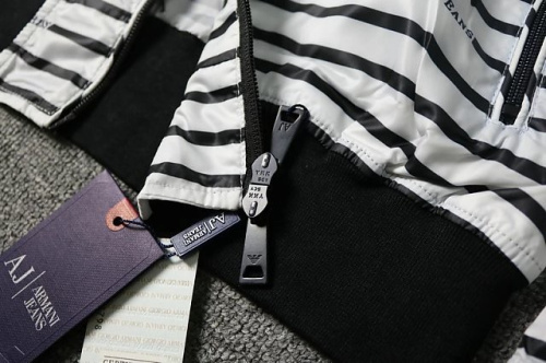 » ARMANI JEANS/阿玛尼男士条纹连帽休闲薄款时尚百搭风衣外套 128出