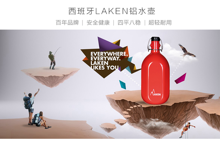 西班牙LAKEN户外登山铝水壶水杯 1000ml