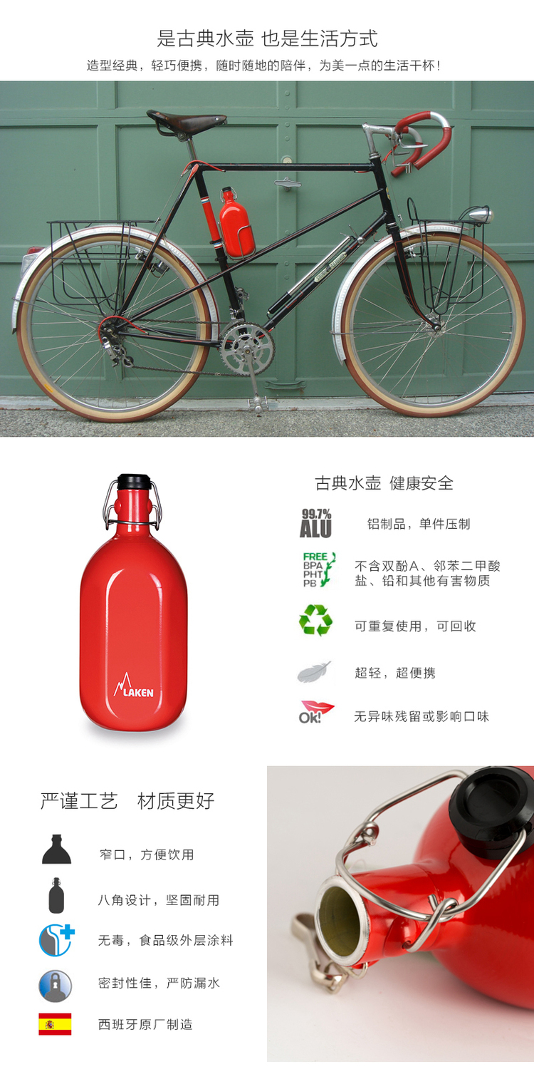 西班牙原产LAKEN户外登山铝水壶水杯 1000ml