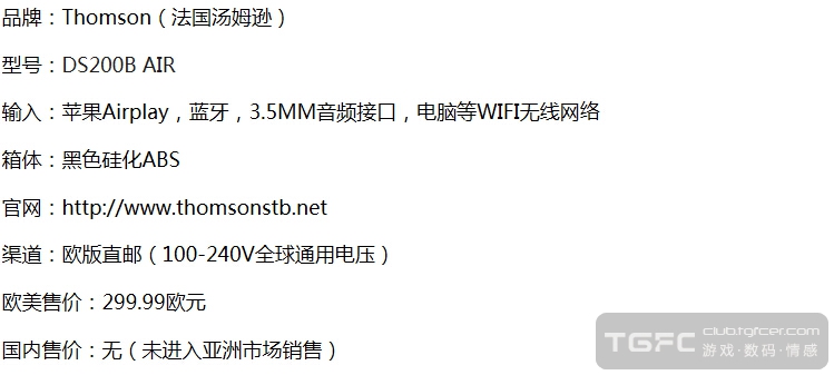 法国Thomson DS200B Airplay&蓝牙双无线音箱(998 RMB):