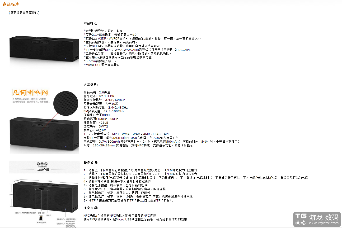 另外不是拆台,先科也有个音箱经常卖39,是蓝牙3.0的,不过只有一个喇叭,3W,其他功能都一样。