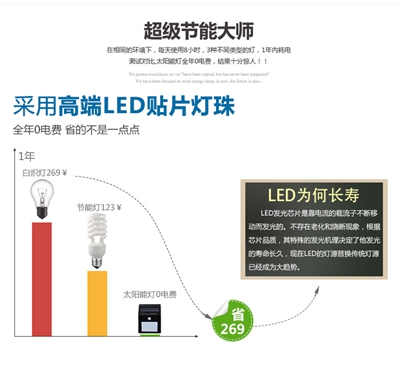 将智能灯挂太阳照射的地方吸收太阳光处吸收太阳光7小时连续5天阴天都能照明电费划算