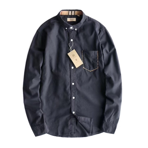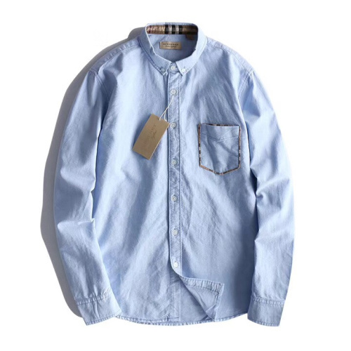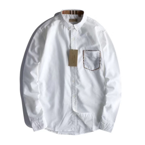 Burberry基础纯色舒适纯棉牛津纺百搭商务休闲长袖衬衫