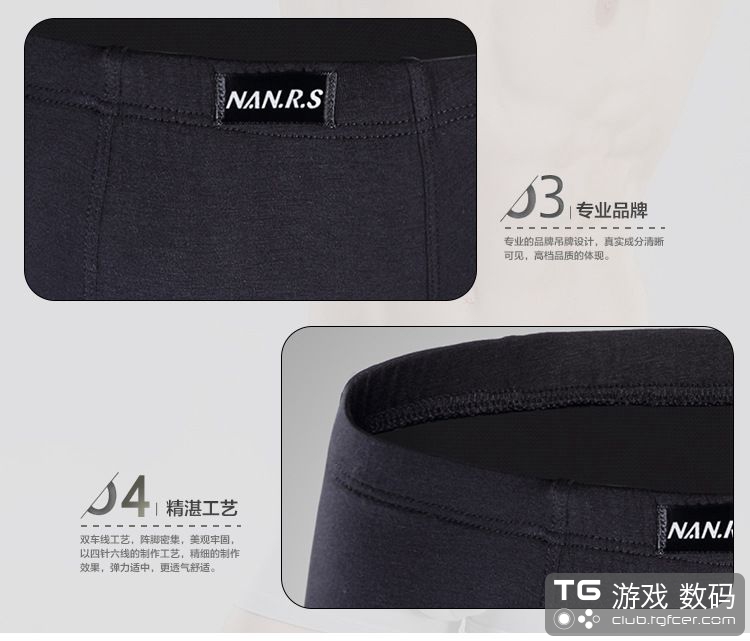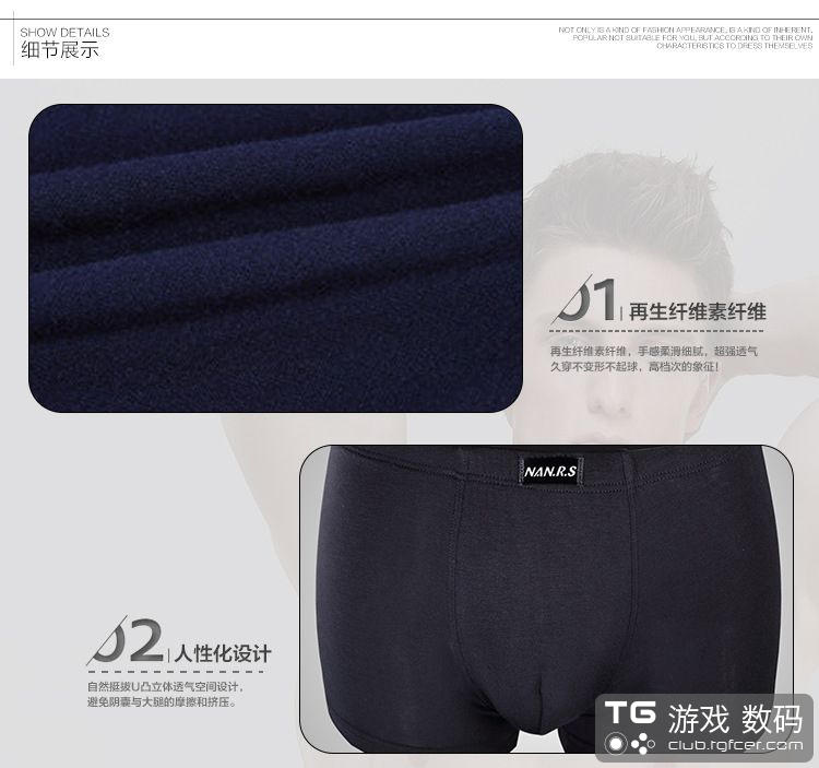 精选再生纤维,高档面料,能够更好的吸湿排汗,双车线工艺,阵脚密集,四针六线的,耐穿!u凸立体透气空间设计,承托男性前档,穿着舒适!