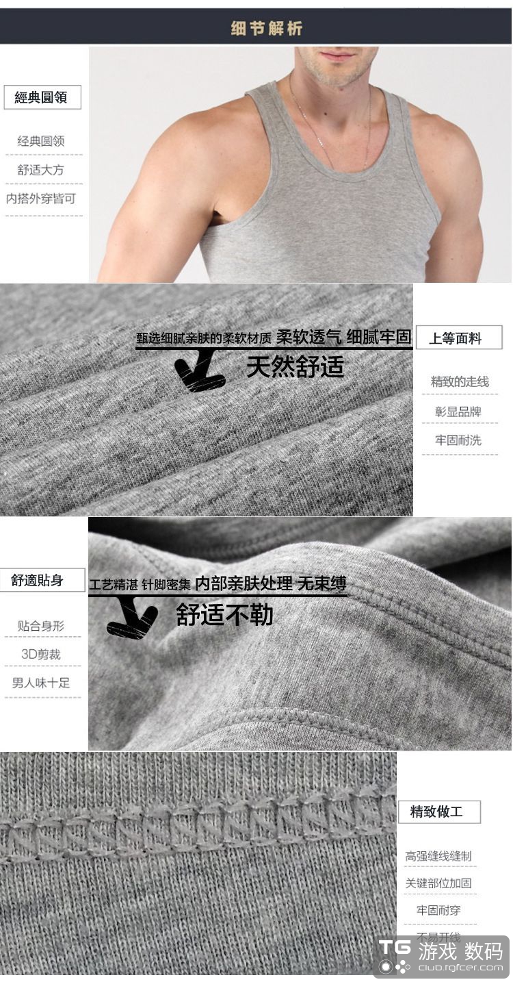 采用精梳棉面料,加入氨纶材质,不易变形,吸汗透气,不易闷热。