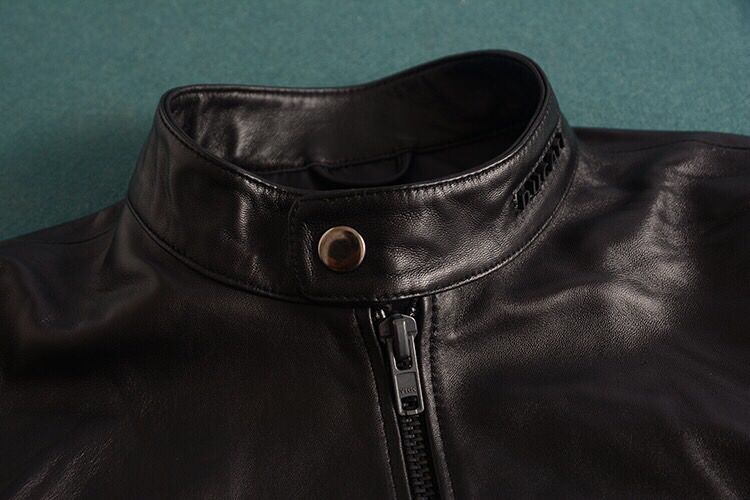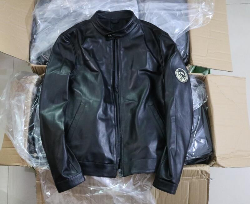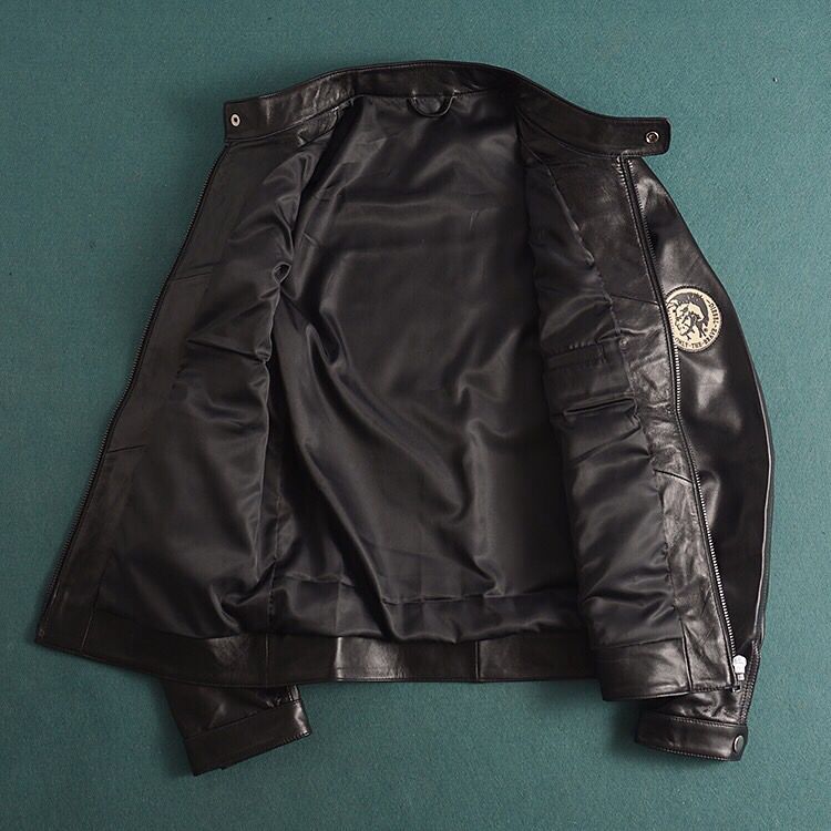 迪赛DIESEL新西兰进口绵羊皮机车风夹克外套!一线国际品牌、逼格超高!皮质非常细腻 担保100%绵羊皮而且整件皮衣都是、有一点拼接假皮直播生吃衣服!青岛皮衣代工厂订单、全部走国际路线、所以品质一点不容含糊、工厂招信誉担保!100%原单货!(款式真的太漂亮了!我最喜欢的就是左肩处印第安人头图案、特上档次、机车范十足、整件衣服顶级羊皮纯进口的,皮质非常细腻、而且比起国内羊骚味皮咱进口羊皮是淡淡香味、高档好太多了!类似这种羊皮夹克 商场以及柜子好贵的、没个千把块别说是真羊皮!所以很具有性价比!咱们一手货源!直接劲爆价!490一件!数量不多、S-3XL码 男人必须来件皮衣!注意码数偏小一码!