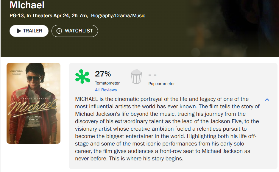 原帖由 interboy 于 2026-4-20 21:21 发表 看了yt上有专题说的MJ生前的前因后果,和这部影版的MJ传记故事的来龙去脉的解说,还有珍妮杰克逊和MJ的女儿都表示不会参与任何这部电影的宣传工作...基本可以定性这部电影又是MJ遗产委员会和他三哥一起出卖MJ的捞钱之 ...